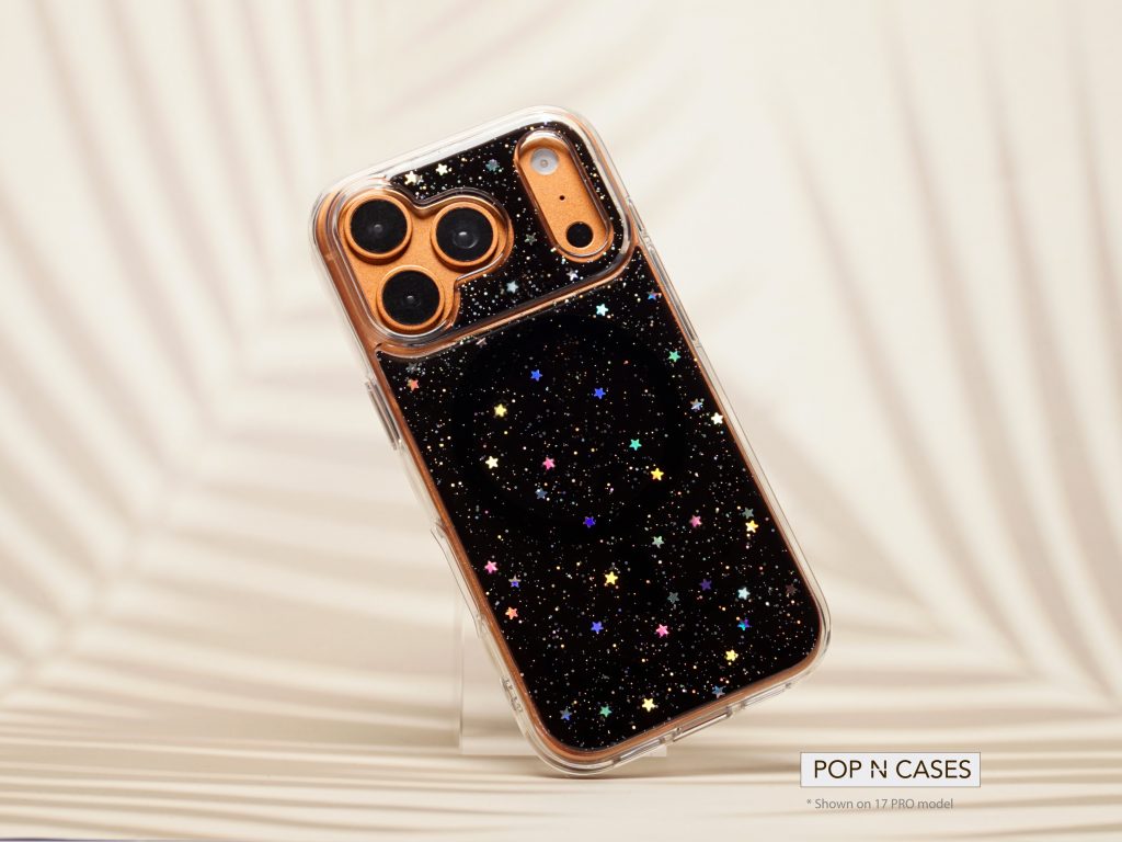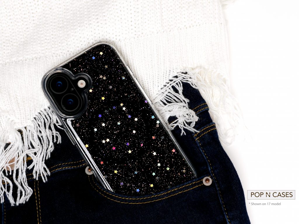 Iridescent holo glitter accents add depth and a subtle star-filled dimension
